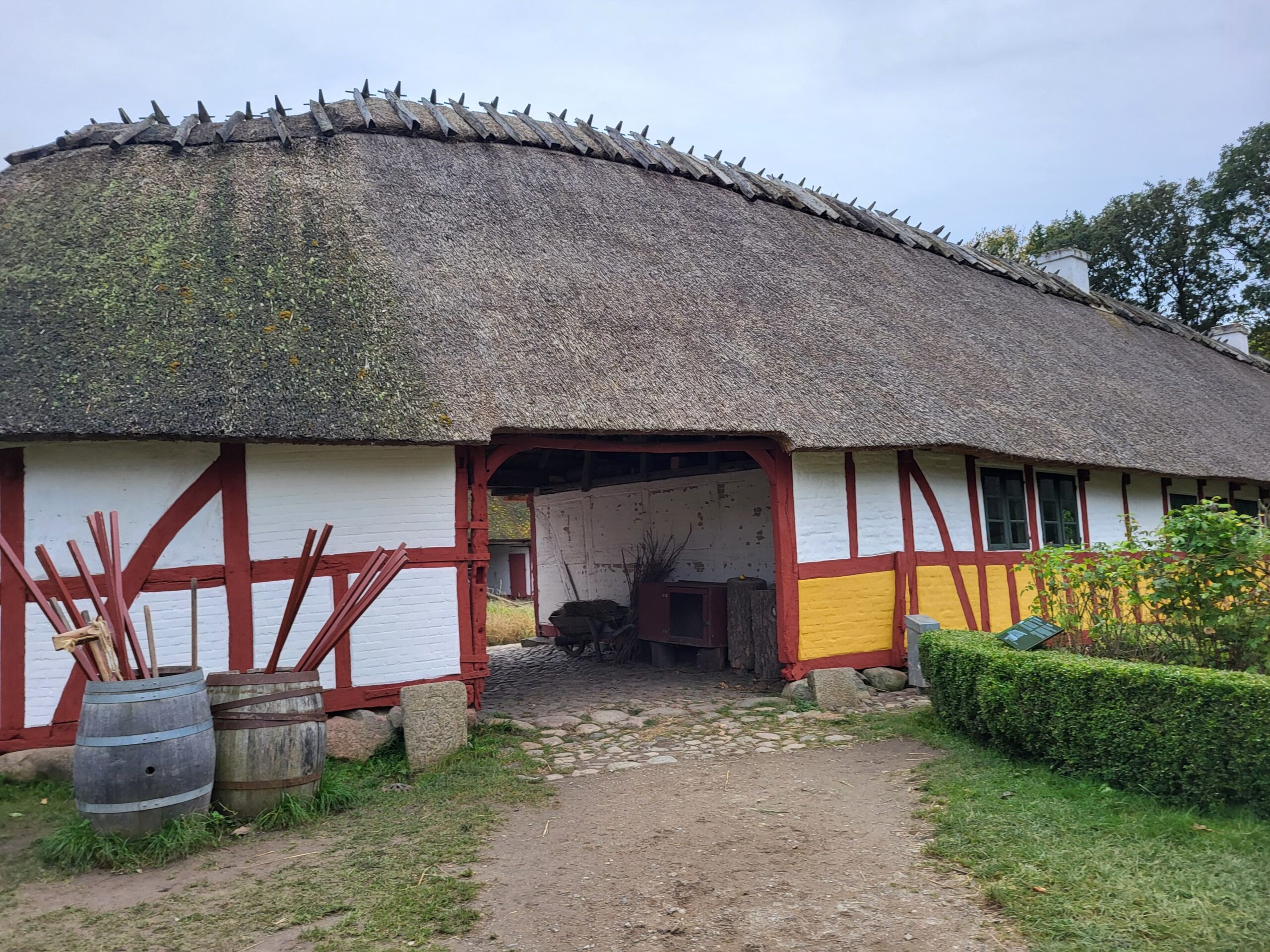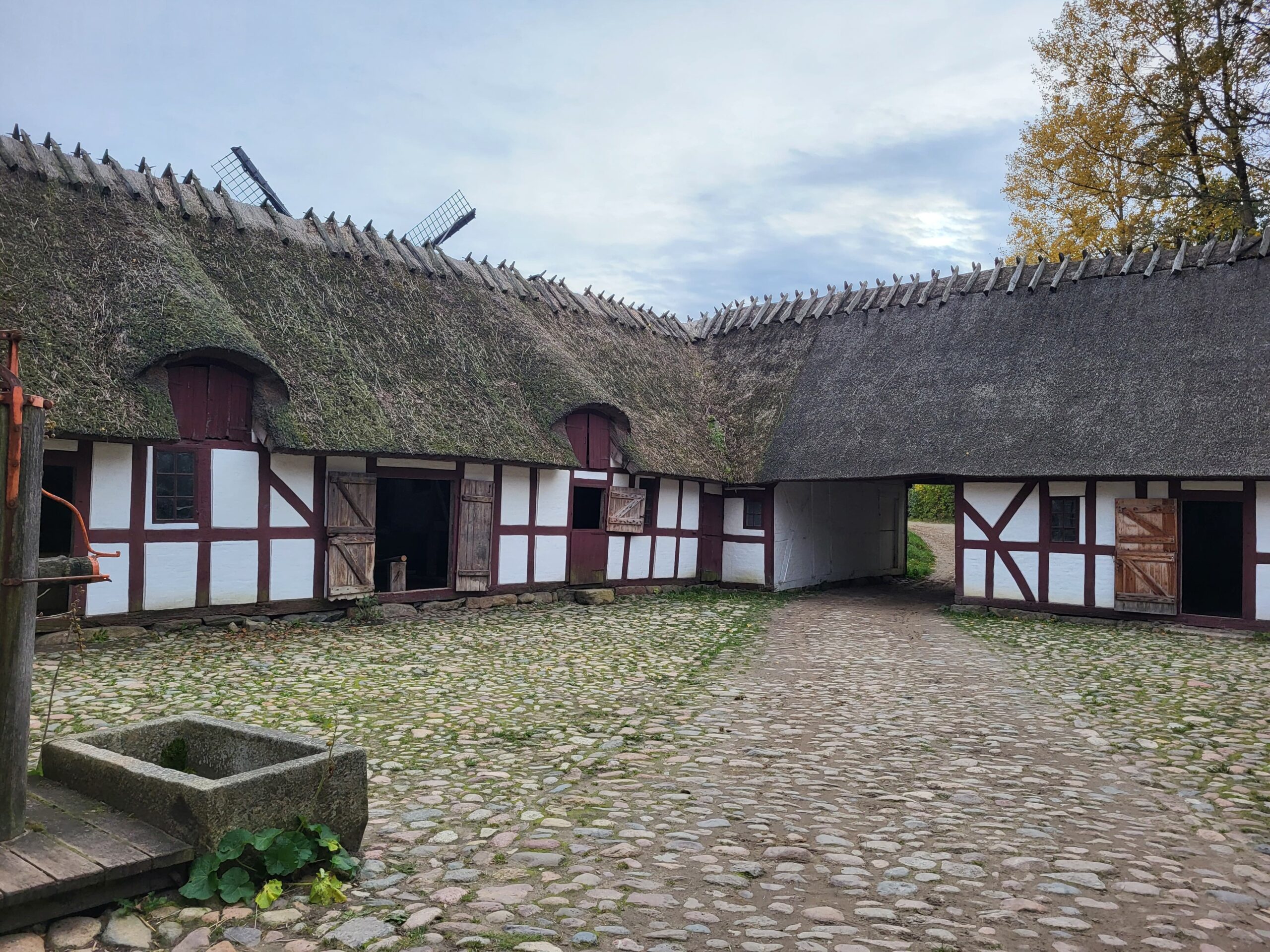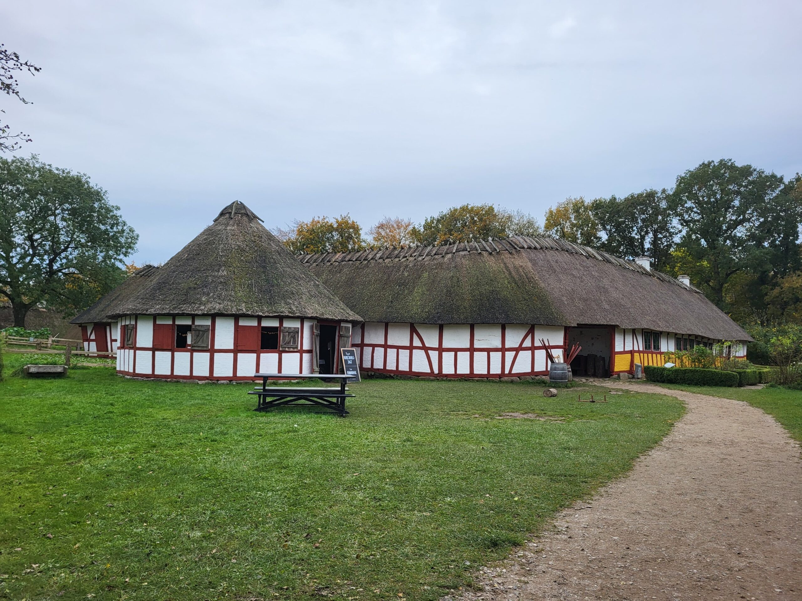 村內有超過25座典型的丹麥農舍、工作坊、商店、學校等建築,每個建築都有專門的展示,介紹當時的生活方式。遊客可以參觀農舍、觀看傳統的製作過程,甚至能和穿著當時服飾的工作人員互動,了解手工藝的製作過程,比如木工、紡織、鍛造等。