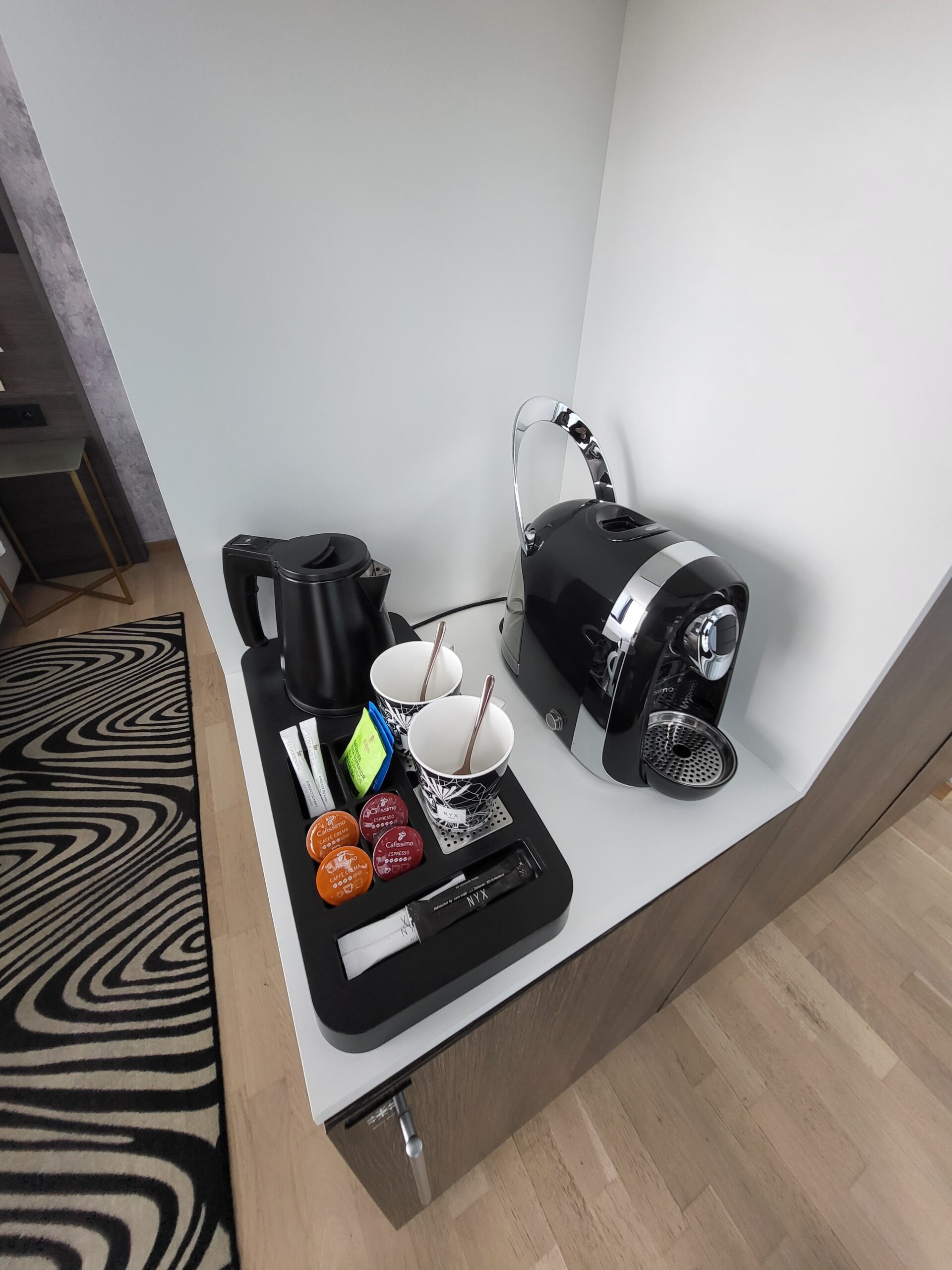 第一次在歐洲住不那麼貴的旅館還遇到有提供咖啡機的,超驚喜!!(雖然本人不太喝咖啡XDD