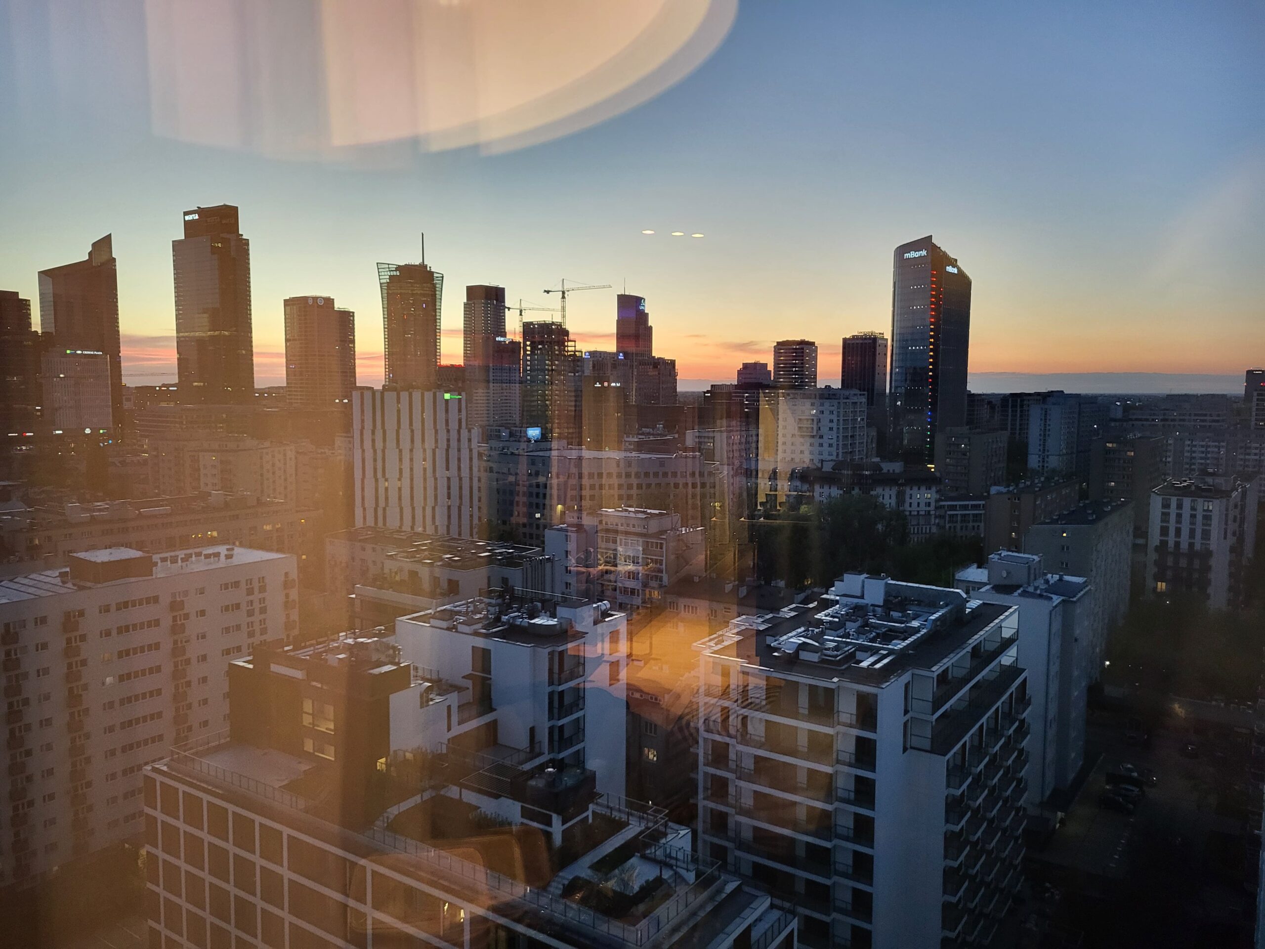 稍晚透過窗戶可以拍到的夕陽,市景很美,然後頂樓的話也有一個酒吧,晚上可以上去看看夕陽跟夜景。